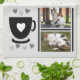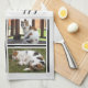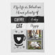 Geschenkidee für Küchen Handtuch. Mein Leben ist fabelhaft. Kaffee und Katze. Ändern Sie den Kaffee in Tee, wenn Sie es vorziehen, fügen Sie den Namen Ihres Haustieres und zwei Fotos. In Grau, Schwarz und Weiß.