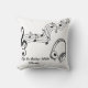 Ein weißes Kopfkissen mit dem Satz "Leben ist besser mit Musik", ein Kopfhörer und Musiknoten, die alle in Schwarz gezeichnet und geschrieben werden.