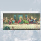Vintage Illustration religiöser Renaissance-Ära schöne Kunst Reproduktion des letzten Abendmahles von Leonardo da Vinci. Das Letzte Abendmahl war das letzte Mahl, das Jesus Christus vor seinem Tod mit seinen zwölf Aposteln und Jüngern geteilt hatte. Das Letzte Abendmahl porträtiert speziell die Reaktion jedes Apostels, als der junge Mann Jesus Christus sagte, einer von ihnen würde ihn verraten. Leonardo da Vinci schuf das Letzte Abendmahl (um 1495-1498) für seinen Förderer Herzog Ludovico Sforza und seine Herzogin Beatrice d'Este. Das Originalgemälde ist ein Wandgemälde an der hinteren Wand des Speisesaals in Santa Maria delle Grazie in Mailand, Italien.