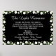 Eine elegante Beerdigung Gedenkfeier mit einem Lebenszeichen mit weißen Blume und einem Gedicht.
