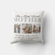 Modernes Kinderkissen mit dem niedlichen Sprichwort "die am meisten geliebte Mutter", drei Fotos der Kinder, ihren Namen und der Überschrift "Mütter halten ihren Kindern nur eine Weile die Hände, aber ihre Herzen für immer".
