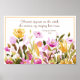 Ein inspirierendes individuelles Poster zeigt einen schönen, blumengeschmückten Aquarellgarten mit rosa und gelben Blumen. Es zeigt einen Teil des Solomon-Lieds der Bibelverse 2:12, "Blume erscheinen auf der Erde; die Saison des Gesangs ist gekommen."*