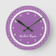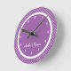 Lila Schlafzimmer-Wanduhr des Polka-Punkt-Mädchens personalisiert mit ihrem Namen.