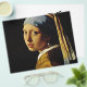 Ein klassisches Kunstwerk von Johannes Vermeer, das in den öffentlichen Bereich übergegangen ist und wunderbare Geschenke und andere Produkte herstellt. Dies ist vielleicht das einfachste und dennoch berühmteste von Vermeers Gemälden. Er verwendet seine übliche Palette von Grundblau und Gelb, um diese Figur auf einen reinen schwarzen Hintergrund zu setzen, der sie ganz von den häuslichen Handlungen der meisten seiner Portraits und anderen Arbeiten entfernt. Das Mädchen mit einem Turban oder "Das Mädchen mit dem Perlenohrring" wurde im Laufe der Jahrhunderte verloren und schwer beschädigt, bis es wieder auftauchte und im späten 19. Jahrhundert restauriert wurde. Johannes (oder Jan oder Johan) Vermeer war ein niederländischer Barockmaler, der für seine unverwechselbare Palette von Blau und Gelb bekannt ist. Van Gogh wurde von Vermeer beeinflusst und ziemlich fasziniert und nannte ihn einen "seltsamen Maler", dessen Palette "aus blau, cornblumengelb, perlengrau, schwarz und weiß besteht". Vermeers Werk zeigt typischerweise Portraits und Szenen aus dem häuslichen Leben, und er hat sich von der Unklarheit zu einem der bewundernswertesten Maler seiner Zeit entwickelt. Alle unsere Produkte werden mit großformatigen Bildern hergestellt, die sorgfältig bearbeitet wurden, um die bestmögliche Auflösung, Farbe und Details zu gewährleisten.