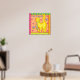 "The Master"-Katze ist voll von Einstellung und zeigt sie mit einer Schlangenfuchsien und grünlich gestreiften Krawatte. Schwanz und Nase in der Luft, diese Katze ist sich der bezaubernden Käfer, die um ihn herum fliegen, nicht bewusst. Fuchsia Pfow-Drucke und grüne Punkte werden zufällig auf einem orangen Hintergrund mit dem Text "The Master" geworfen. Ein weißlicher, mehrfarbiger Rahmen umgibt das Bild. "The Master" gelbe Katze ist eine von 10 Katzen aus Phyllis Dobbs "Meow Meow" Stoffkollektion.