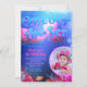 Diese Einladung verwendet Blau und Rosa als Hauptfarbpalette. Die Tiefe des Designs wird durch das sehr weit entfernte Erscheinungsbild der Fische berücksichtigt. Lichteffekte werden besonders im Meerjungfrau-Schwanz eingesetzt, um ihn zum Designerstar zu machen