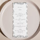 Elegant alle floralen Wildblumen schwarz und weiß 4x9" Blumenkarten Hochzeitstisch Menü Karte Flat Dinner Menü in modernen Skriptkalligraphie. Eine Auswahl von passenden Artikeln und 12x18 finden Sie in unserem Shop VelvetPaperCo.