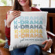 Moderner koreanischer Drama-Liebhaber werfen Kissen mit sich wiederholenden "K-Drama" Wörtern in lustigen, hellen Blau- und Orangetönen mit dem Satz "Nur eine weitere Folge". Es ist mit einem Namen oder einem eigenen Text auf der Rückseite des Kissens in dunkelblau einstellbar.