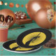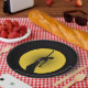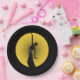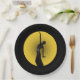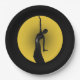 Set von acht 9" Tellern aus schwarzem Papier mit einem Bild eines Art-Déco-Frauenbildes, das in hellgelber Helligkeit eines Vollmonds silhouiert ist.