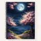 Bäume, die einen steinernen Weg entlang blühen pink, eingerahmt einen Vollmond mit Blume, auf diesem schönen Spiralheft. Ideal für alle, die Blume und Gärten Lieben haben.
