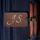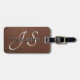 Modischer das Monogramm-Gepäckanhänger der Männer. Ausrüstungsbeschreibungen des Monogramms und Ihres Namens auf einem braunen ledernen Beschaffenheitsnachahmungshintergrund. (Kein wirkliches Leder wird benutzt), fügen Sie Ihre Kontaktdetails über die Rückseite hinzu. Vervollkommnen Sie Geschenk für ihn.