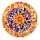 Ein fröhliches Mixed-Media-Mosaik von mir! Dazu gehören gelbe, orangefarbene und lila Gerüche, Glasperlen, Vintage Cabochons und ein gefundenes Objekt.