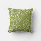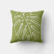 Das Motiv aus weißem tropischem Leaf auf dem grüne Kissen