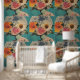 Diese bezaubernde Tapete zeigt eine Figur, deren Gesicht durch blühende Blume schön verborgen ist, Set vor dem Hintergrund eines leuchtenden Vollmonds. Es verbindet Surrealismus mit Vintager und boho Ästhetik und symbolisiert Rätsel, Transformation und die tiefe Verbindung zwischen Natur und Kosmos. Eine perfekte Wahl für Liebhaber künstlerischer, himmlischer und blumengeschmückter Themen.