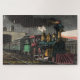 Dieser Lithograph namens "The Night Express: The Start" zeigt einen Nachtzug, der gerade den Bahnhof mit Flammen verlasse, die vom Stapel geschossen wurden.