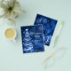 Elegante Weihnachtsfeier mit Programm und Menü mit funkelnden Weihnachtsbaumen in Navy Blue.