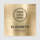 Modernes berufliches Namensschild mit dem Firmenlogo Ihres Unternehmens oder Ihrer Organisation vor einem metallisch geprägten Hintergrund aus gebürstetem Gold. Fügen Sie einen Namen und Titel in einfacher Typografie hinzu.