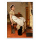 Ein neues Stubenmädchen ist vom Tag müde und sitzt sich hin. Eine schwarze Katze sitzt nahe ihr durch das Feuer. Es ist sehr bequemes Schauen und süß und nett.