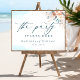 Herzlich willkommen in Ihrer Hochzeit in Urlaubsort mit diesem atemberaubenden The Party fängt hier Blue Beach Wedding Poster an. Es ist in sanften Blau-, aquamarin-, Türkis- und Pfirsichfarben mit zarten Blumenakzenten gestaltet und vereint das Wesen moderner Küsteneleganz und den friedlichen Reiz des Ozeans. Dieses Schild ist perfekt für eine Strandfeier und verleiht Ihrem Tag eine raffinierte und einladende Touch.