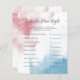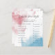 Elegantes Geschlecht zeigen Party-Spielkarte mit Aquarellblau in Rosa und Blau mit Imitaten Gold Glitzer. Perfektes Spiel während der Dusche. Es listet Babynahrung auf und frage den Gästen, den Preis zu erraten. Wer den Preis am nächsten schätzt, gewinnt!