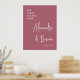 Dieses schlichte und elegante Gestaltungszeichen ist der perfekte Weg, um Ihre Gäste zu Ihrem Hochzeitstag mit einer Touch von Eleganz und Stil willkommen zu heißen! Mit den Worten "Das Party fängt jetzt an" in der modernen weißen Blockschrift, mit Ihren Namen in der schönen handgeschriebenen Schrift Typografie und Ihrem Hochzeitstag, das ganze Set vor einem dunkelstaubigen Rose rosa Hintergrund, wird dieses Zeichen sicher einen bleibenden Eindruck machen. Ideal, um sich bei Ihrer Zeremonie, Cocktailstunde oder Empfang an einem prominenten Ort zu präsentieren, kann es nach Ihrem besonderen Tag leicht als wahre Sake gerahmt werden. Dieses elegante und moderne Poster in dunkelviolett-rosa im Trend verleiht Ihrem Hochzeitsdekor eine Touch der Eleganz und verleiht dem Set den Ton für eine Feier, die Ihre Gäste nicht so schnell vergessen werden.