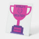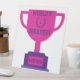 Dieses Podestschild zeigt die Worte "Die größte Mutter der Welt", die einen Schriftart mit lila Buchstaben und einen Gewinnerschrei mit der Nummer 1 in der Mitte über eine Pokale in rosa Farben zeigt. Die Pokale ist lila in diesem Thema des Muttertags untergebracht. Gedruckt mit hochwertigem, vollfarbigem Digitaldruck in 4 Größen aus 1/16" weißem Polystyrol 10" x 12" Display mit 3" Sockel.