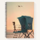 Dies ist ein Spiralnotebook. Sowohl auf der Vorder- als auch auf der Rückseite ist ein Rendering in Acrylfarbe eines Fotografen, der Fotos auf einem Schutzposten oder einer Station nimmt. Es sieht aus wie der Anfang des Abends. Titel der Darstellung ist: Das perfekte Bild machen.