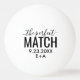 Personalisierte Ping Pong Ball Gastgeschenke Hochzeiten mit "The Perfect Match" in Rot, kundenspezifisch für Ihre Gastgeschenke Hochzeiten gedruckt, Brautparty Favors oder Tischdekoration mit elegantem Schwarz-Weiß Typografie-Design mit Kalligraphie Handschrift und großen Sans-Serif-Schriftart und Platz für die Initialen und Hochzeitstag des Paares. Farben können mit dem Vorlageneditor geändert werden.