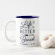 Das personalisierte Leben am Strand ist besser Zweifarbige Tasse