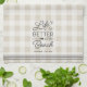 Feiern Sie das Leben am Strand mit diesem niedlichen Küchen-personalisierten Küchentuch mit Ihrem Familiennamen und/oder Jahr unter "Leben ist am Strand besser" eingerichtet mit Paddel und Seestern Illustrationen auf einem tonal karierten Hintergrund. Die Detaillierung der Seilbahn rundet das Design ab.