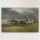 Dieses Design zeigt ein Gemälde des französischen Künstlers Théodore Géricault (1791-1824), der einer der Pioniere der Romantik-Bewegung war. Es zeigt eine Szene aus dem berühmten Epsom Derby, ein Pferderennen in England, das für dreijährige Colts und Fillie offen ist. Das Rennen wird am ersten Samstag des Monats Juni jedes Jahres auf der Epsom Downs Racecourse in Surrey durchgeführt, über eine Entfernung von 1,5 km, vier Furlongs und 10 Meter (2,423 Meter). Es wurde zum ersten Mal im Jahr 1780 ausgeführt. Es ist die angesehenste der fünf Pferderennen der britischen Klassik (die anderen sind die 2.000 Guinea, die 1.000 Guinea, die Eichen und die St Leger Stakes). Dieses Bild zeigt das Epsom-Derby-Rennen, das 1821 stattfand, und das ursprüngliche Gemälde befindet sich heute im Louvre-Museum.