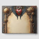 Das pulsierende Herz der Mechanik, ein glühendes Steampunkherz. Der Rahmen zeichnet sich durch den charakteristischen Steampunk-Stil aus, der durch eine faszinierende Mischung aus Viktorianischer Eleganz und industriellem Flair charakterisiert ist. Komplexe mechanische Details wie komplizierte Zahnräder, Schrauben und Bolzen schmücken die Kante, verleihen dem Design Tiefe und Textur. Das Herz ist mechanisch konstruiert, mit sichtbaren Federn, kleinen Gängen und metallischen Verzierungen, die seine Vitalität in einem technischen Kontext symbolisieren. Im Herzen sind dunkle Flügel zu sehen.