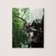 Ein Gemälde eines schwarzen Einhorns an einem Fluss von seinem Waldrand aus.