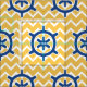Das Rad-Monogramm des blauen nautischschiffs und Stoff