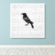 Dieses quadratische Stück hat das komplette Gedicht von The Raven von Edgar Allan Poe. Im Zentrum der Leinwand befindet sich die Silhouette eines Rabe. "The Raven" und Edgar Allan Poes Signatur erscheinen in der Silhouette des Vogels.