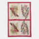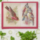 Vintager zeichn von roten Vögeln: der Crimson Finch und der Crested Titmouse. Diese farbigen Zeichnungen stammen aus der altmodischen Werbekartenreihe Arm and Hammer Baking Soda.
