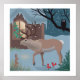 Die Rentiere ist die zentrale Figur in einer Winternachtszene mit einer Eule, Kaninchen und zwei Kardinälen Schauspiel eine tragende Besetzung.