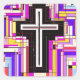 Ein einzigartiges, helles, modernes Christliches Kreuz. Beeindruckendes grafisches Design mit lebhaften Mehrfarben. Ein sehr dekoratives Buntglas und Mosaikmotiv.