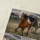 Reitpferde gewinnen das klassische Pferderennen in einem Action-Run-Run. Seabiscuit, der Unterlegene, wird gegen das Lieblingspferd, den Kriegsheradmiral, ausgeglichen. Dieses Publikum erfreut Szene aus dem Rennen ist in einem Gemälde des Match Race von Daniel Fishback von 1938 verewigt. Es wurde gesagt, das wichtigste Pferderennen des 20. Jahrhunderts zu sein. Jockey reitet auf diesem schönen Pferd auf Baltimore Pimlico Race Course, der den Triple Kronsieger besiegt.