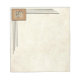 5,5" x 6" Pergament Notizblock mit elegantem Art Deco Design aus schwarzen Linien und einem antiken goldenen Quadrat mit einem anpassbaren Monogramm. Siehe die gesamte Notepad-Auflistung von Roaring 20s in den SPECIAL-TOUCHS | Abschnitt Gastgeschenke.