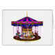 Ein niedliches, sehr farbenfrohes rosa Karussell/fröhliches Rundbild mit dekorierten Holzpferden aller Farben und Designs, die wirklich eine Touch des Karnevals oder des Zirkus schaffen.