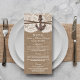 Die rustikale Hochzeitskollektion für den nautischen Anker ist ein atemberaubendes Design mit einem schönen rustikalen Beinschlaffeffekt-Hintergrund und einem romantischen, Vintagen, weißen Spitzeneffekt, der mit einem nautischen Anker und Schwanz vollendet ist. Diese Menükarten können für Ihren besondere Anlass personalisiert sein und würden die perfekte Vorlage für Hochzeitsmenüs, Brautparty-Menüs, Partnermenüs, Geburtstagsmenüs und vieles mehr machen. *Bitte beachten Sie, dass Zazzle nur gedruckte Produkte verkauft, sodass dieses Produkt keine echten Bruch-, Spitzen-, Anker- oder Garnmaterialien enthält.