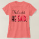 DAS SAGTE ER. Fantastische und lustige T - Shirt mit diesem großartigen berüchtigten Sprichwort, die Ihnen ein Lächeln verschaffen und gleichzeitig stilvoll und niedlich aussehen. Zumindest sagte er das... LOL!