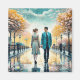 Hübsche ai Aquarellkunst. Ein Mann und eine Frau, die sich in der Londoner Straße überqueren, bürsten sich die Hände, während sie vorbeikommen. Eine romantische Gelegenheit zu treffen.