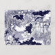 Wolken rollen über, Sterne leuchten durch, Wellen stürzen auf den Felsen und die Meerjungfrauen schwimmen und spritzen. Klassisches Blau und Weiß.