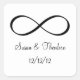 Weiß und Schwarz-Unendlichkeitssymbol, das Save the Date für Ihre Hochzeit angepasst werden kann.