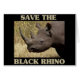 Ein nahes Schwarzes Rhino mit den Worten Rette den Schwarzen Rhino, der ihn umgibt.