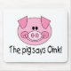 Das Schwein sagt, dass Oink Entwurf garantiert wird, um ein enormes Gekicher aus Ihrem kleinen Liebling heraus zu erhalten. Niedliches Geschenk für das Baby oder das Kleinkind dass LiebeVieh und lernt gerade, dass die Töne, die alle Tiere machen! Verfügbar auf Bodysuits, T-Shirts, langen Hülsen-T-Shirts, Tassenkarten, Magneten, Aufklebern, Knöpfen, Schlüsselanhänger, Taschentaschen und mehr! Großes neues Babygeschenk oder a-Babypartygeschenk