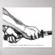 Das zeichnetest von Stift und Tinte in Schwarzweiß ist eine nahe Untersuchung der Hände, die das Schwert greifen