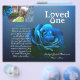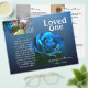 Loved One Typografie mit FOREVERMORE in einem Unendlichkeitssymbol und digital illustrierte blaue Rose auf einem Gedenkprogramm oder Beerdigungsprogramm. Umfasst vier Orte für Fotos Ihrer Lieben und Text für einen Orden des Dienstes, Obituary und andere Details. HINWEIS: Das ist ein flaches Blatt. Du wirst dich falten müssen.